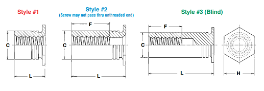 ■PEMスタンドオフ ブラインドタイプ(BSO/BSOS/BSOA)規格表(単位:mm)